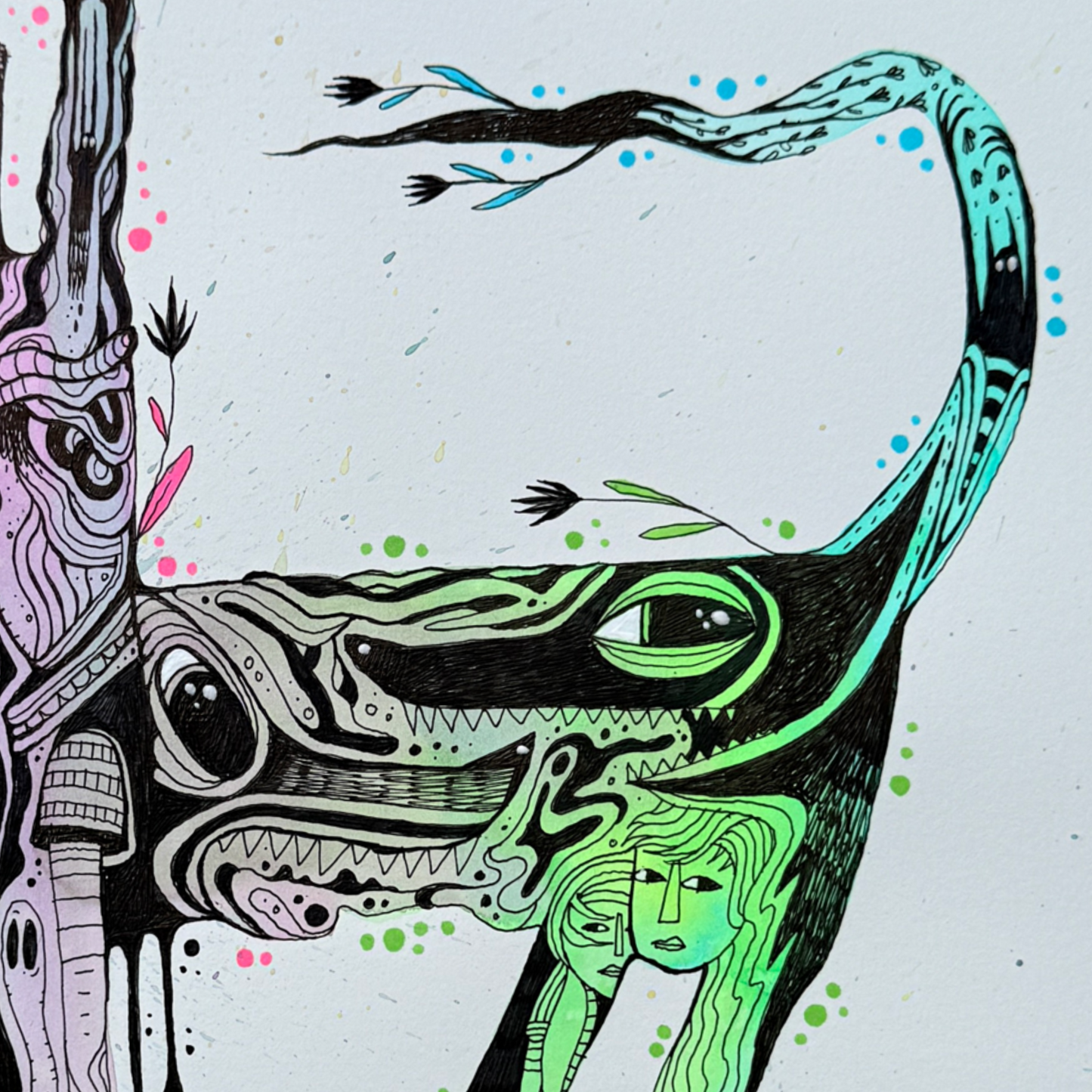 Drawn on 90lb (190 g/m²) mixed media paper, this one-of-a-kind artwork is ready to be framed to your preference. A bold addition to any collection, perfect for those who appreciate the strange and the thought-provoking.