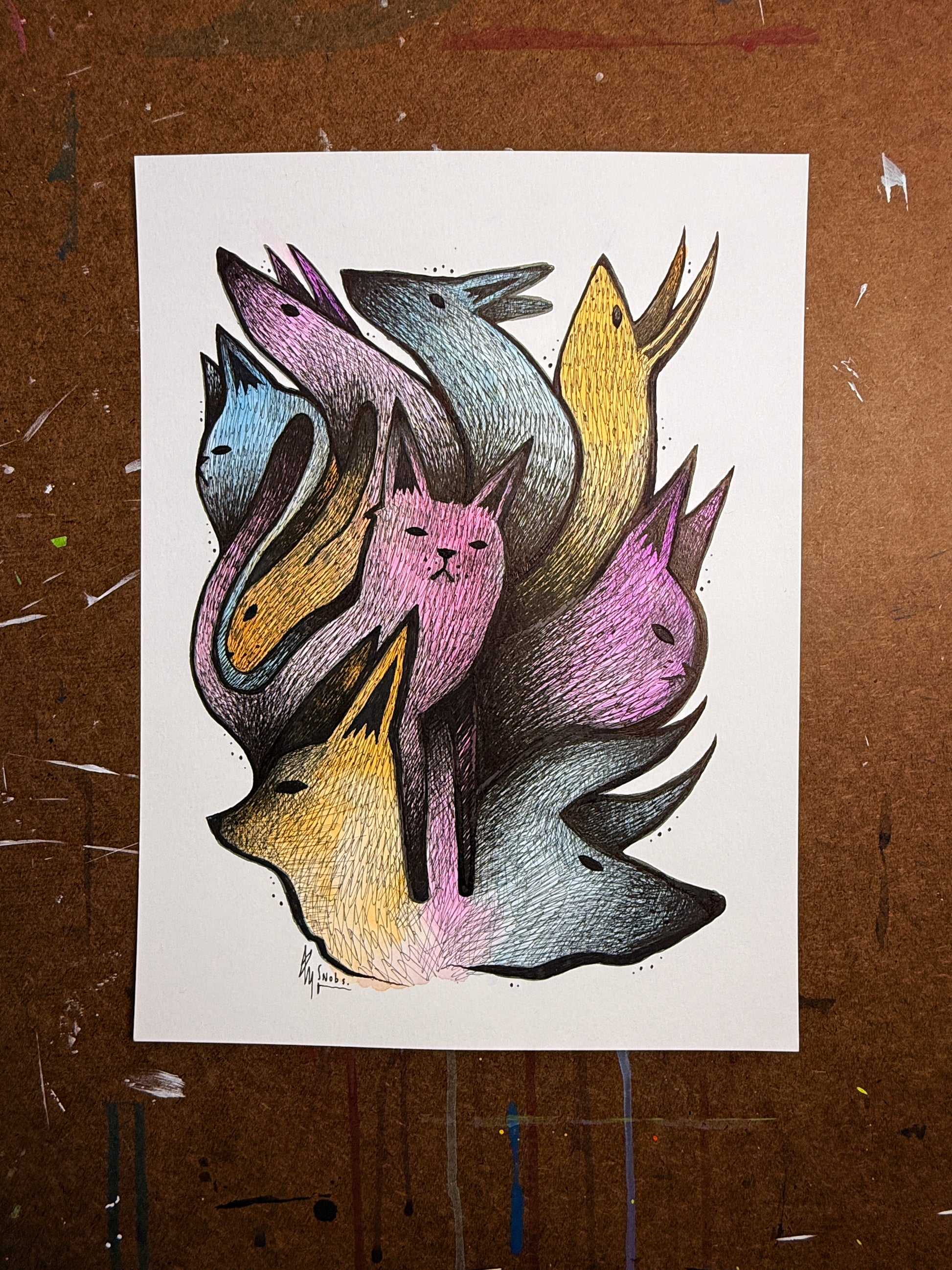 “The Spirits Among Us” original acrylic painting by BrooklynSnobs, painted 12x9 mixed media paper